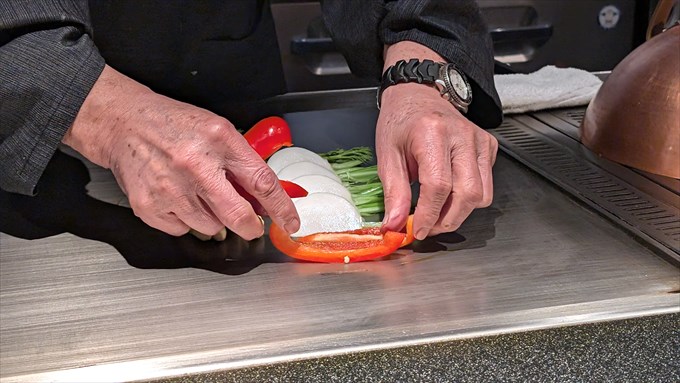 彩り豊かな美しい野菜が丁寧に並べられていきます。