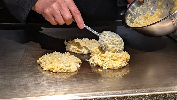 時折かき混ぜながら、鉄板の熱でじっくりと温めていきます。
