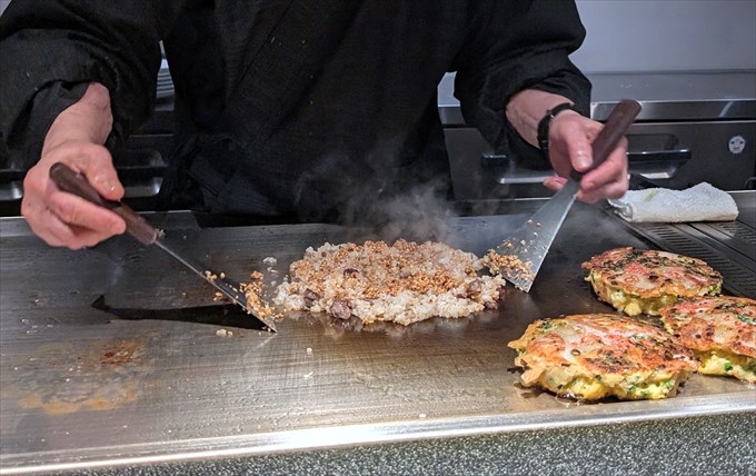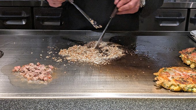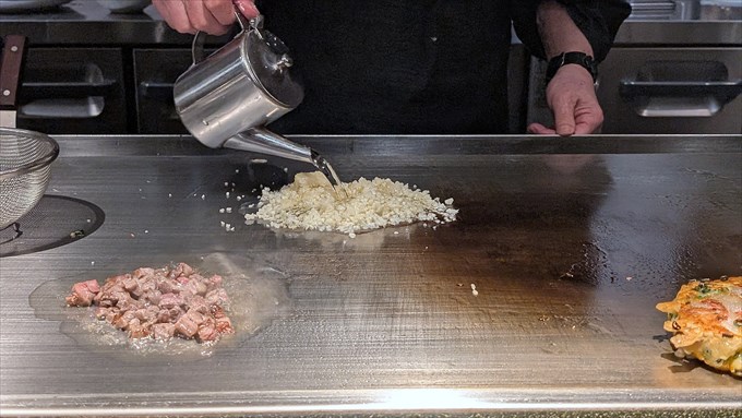 ガーリックライスの調理が開始されました。