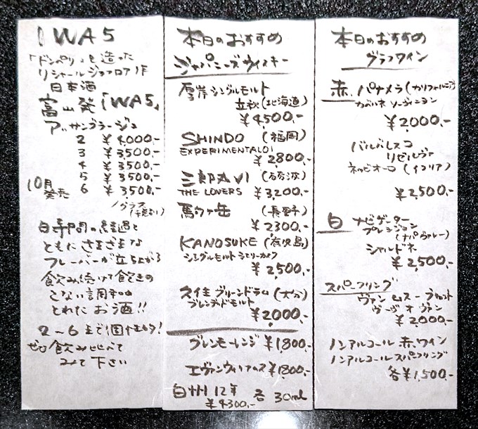 ほほう・・・まるで会席料理のようなおしながきに、ぼくの期待値はホタルイカのように爆湧き、テンションは鰤起しの如くブチ上がっていきます。