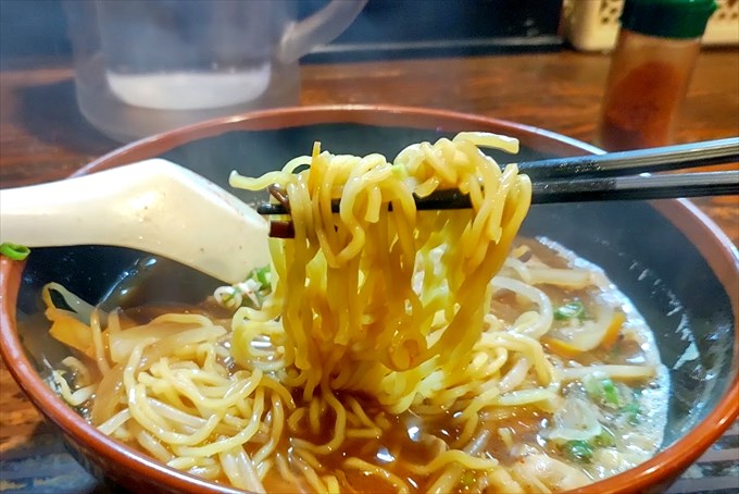 麺は細めで弾力がありしっかりスープと絡む自家製麺。