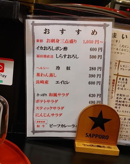 おお、新鮮な刺し身三点盛りとな!――と思ったらすでに品切れ。